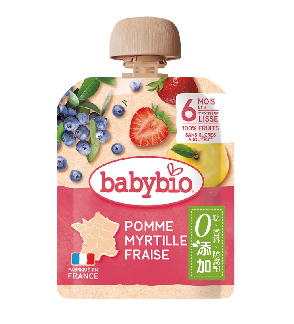 【法國BABYBIO】生機蘋果藍莓草莓纖果泥90g(6M)