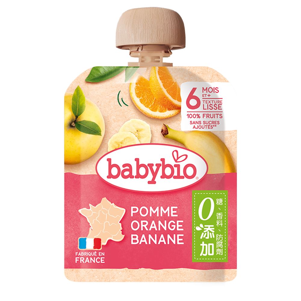 【法國BABYBIO】生機蘋果香橙香蕉纖果泥90g(6M)